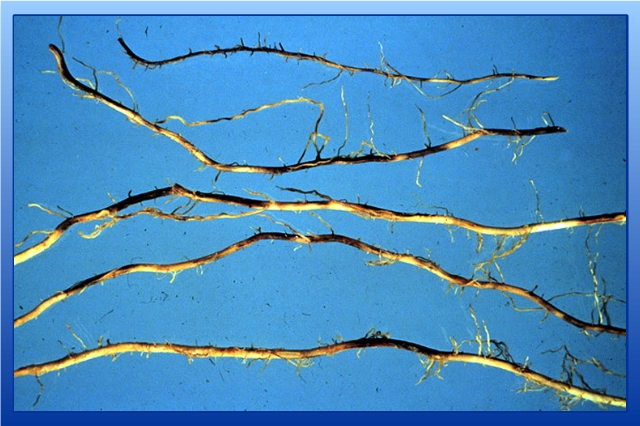 Root lesion nematodes cause damage by burrowing into the root interior and causing death of root tissue. Subsequent inhibition of water and nutrient uptake leads to the above-ground symptoms described previously. Sites of nematode infections can also serve as points of entry for soil-borne plant pathogenic fungi and water molds, leading to further root decay.