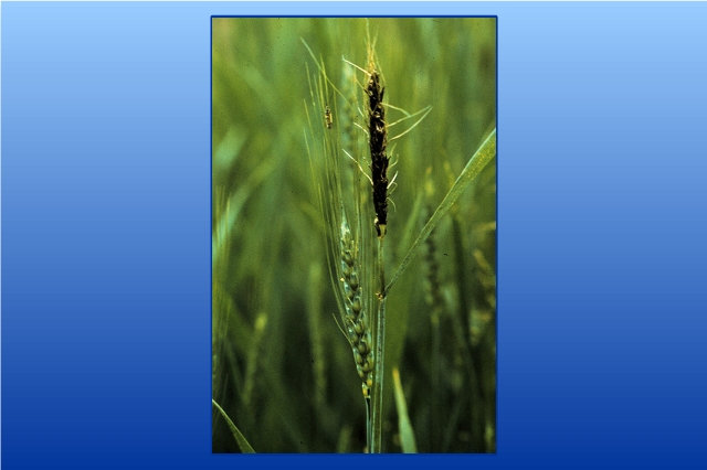 Several types of smut can adversely affect wheat (and other small grain) production. The two most common types of wheat smut are loose smut (shown in this slide) and stinking smut (also called common bunt).